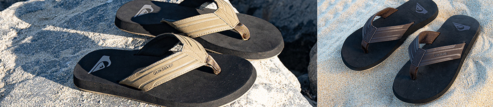 We have plenty of different comfortable and soft materials for you to choose from when picking out a Quiksilver flip flop. Grab suede for the soft, upscale feel or hop into some leather thongs if you’re feeling risqué. Or if you’re headed to the ocean, jump into some rubber ones that are the most protective against water.
